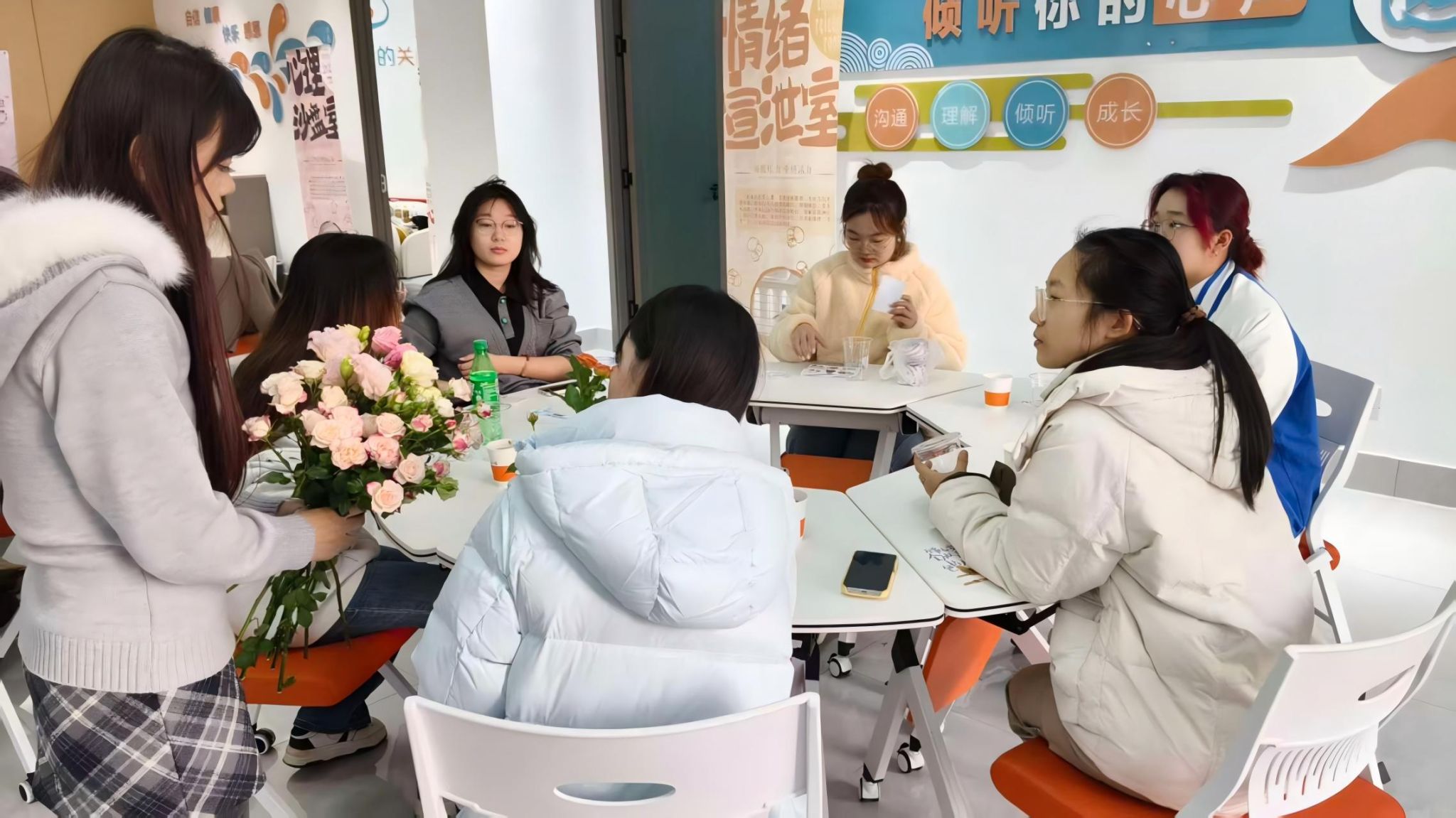 11月7日,我院“同心创艺”团队牵头的“一生一品”项目,在校园“心灵驿站”举办“花漾疗愈润驿站,团辅入班递温情”主题活动,在团队负责人王晓君在指导教师董浩宇带领下开展,创新创业教育中心主任马静怡受邀共同参与,见证这场传递心理关怀的温情活动。